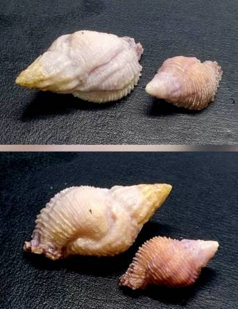 NoteOn offer are two Coralliophila mira collected as a pair together off a coral bobmey in Hamelin Western Australia Bay in 10 meters of water. Large shell F++ 44.9 mm smaller shell 29.3 mm F+++