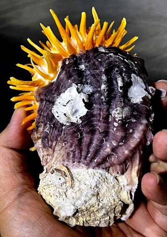 | Note | XFB 43 - Spondylus sp. FROM THE LATE 90'S (different from known species in all books! Some with rare purple, reddish orange, yellow, light brown or even pink spines on white body, some bi-color on both valves!) THIS LOT HAS BEEN KEPT IN THE ORIGINAL CONDITION FOR MORE THAN 25 YEARS AND JUST CLEANED ONE-BY-ONE A FEW DAYS AGO !!! size is approximately 135.50 mm (measured at maximum dimension across the shell & attachment altogether), shells are F++ and better, in general, please see photos, collected by local divers offshore at 15 - 20 meters deep off Racha & Maiton Is., Thailand, Andaman Sea. EX : COLL - Jom Patamakanthin. (***There can be tiny imperfections, scars, damages as natural objects, please bids with your decision & confidence.) Estimated value between 50.00 - 100.00+ euros for such museum-class specimen! |