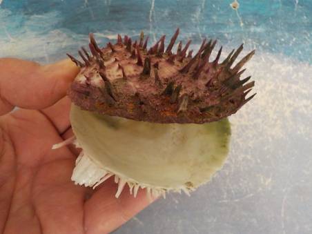 | Note | A superb specimen of spondylus gaederopus ,spinosa, 84.75 mm X 77.55 mm , pure white base !!! , .Evia island,7 meters deep, March 2024. |