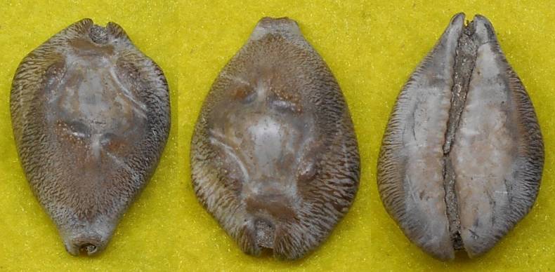 NoteNOT Barycypraea quadrinodosa, although the 2 frontal nodes resemble it. Shell more slim instead of oval.. Finer teeth and more spaced together.. Collected by a local farmer, from top lose fine pebble stones, on a slope. Small area which, could recently had a small landslide. Giriwanji area (Co-0rdinates: 7.43 108.31) Around half a mile west, at the end of the road towards Gunung/Mount Pin. South of Ciamis, Regency of Tasikmlaya. West Java.