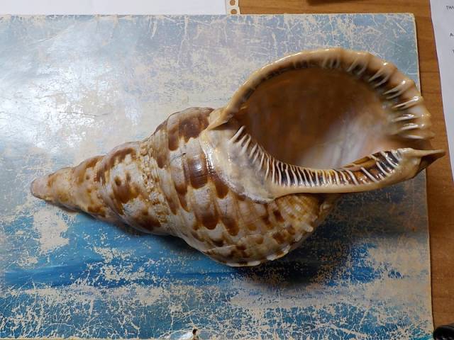 NoteCHARONIA VARIEGATA form SEGUENZAE,VERY BIG, 280 mm,ONE OF THE MOST BEAUTIFUL SHELLS OF GREECE,IN A VERY BIG SIZE ,VERY OLD AND HEAVY SHELL. DREDGED FROM THE DEEP, SKOPELOS ISLAND ,NORTHEN GREECE,JULY 2024