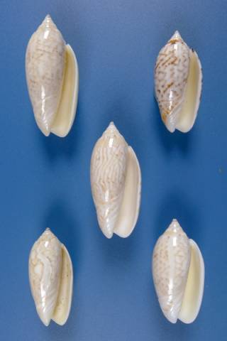 Oliva scripta venezuelana - SET OF 5 SPECIMENS , Petuch & Sargent, 1986