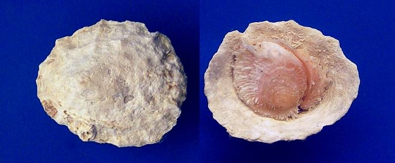 Chama asperella Lamarck, 1819 F++ 14.5 mm RARE COLOR ! Interesting finding, attached to the inner part of the patella ! Dived 15 m. taken alive attach on shipwreck . 9/2020 Saronic Gulf, Greece