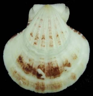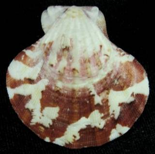 Trawled at 35m on sand. 1985. F+++/Gem-.Large specimen. Dark Maroon and white radial ribs ! Uncommon ! (JAN)