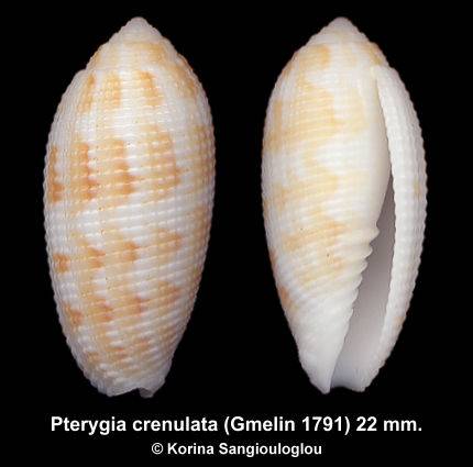 Gem 22 mm. Very beautiful delicate form from unusual place. White color with attractive yellowish, beige soft marks and nodulose cords. White aperture and lip with fine teeth. Taken on coral sand at 2-3 m. Beautemps-Beaupre, Loyalty Islands, New Caledonia 1992