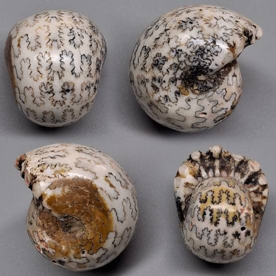 Note*** N-147 *** VERY INTERESTING SPECIES. COLLECTED AROUND THE RIVER AT A DEPTH OF 2 METER, TESA VILLAGE, EAST NUSA TENGGARA, INDONESIA. THESE SPECIMENS HAVE BEEN POLISHED HELPING TO DISPLAY THEIR STUNNING SUTURE LINES WHICH ARE HIGHLY VISIBLE ON THESE AMMONITES,MARCH, 2026.( PICTURE & VIDEO AVAILABLE)
