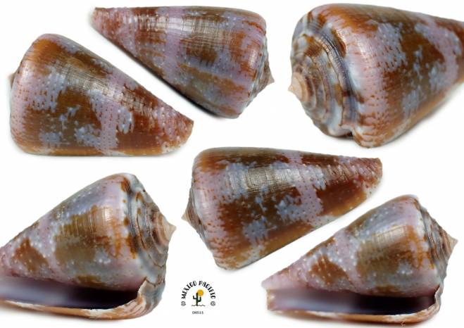 | Note | PINKISH-PURPLISH COLOR FORM!! This irresistible and marvelous beauty shows a clear dense Pinkish-purplish background colors with elegant multiple brown spots all around between the elegant micro line banding making a great effect. The lip, spire and apex are really intact. Some bluish coloration between the middle side. Elegant conical shape. For advancer collectors. This is one of the most Poisons conus in Mexico. Fortunately they are most night active and during the day time they are buried under the rocks, mud or corals. This species can be very variable that some of them do not seem to belong to the same species. Impressive variability of colors, forms and patterns. Found buried in sand under stones and near corals about 3m deep. Near Bahia de Piedras, Melaque, Jalisco, Mexico. March 2026. Value for this special unique color combination and Gorgeous pattern: 15-18 euros . Good luck and happy shelling. MEXICO PACIFIC |
