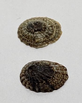 | Note | Two nice specimens of Siphonaria lessoni, a marine pulmonate snail which is found in southern PerĂº and Chile. |