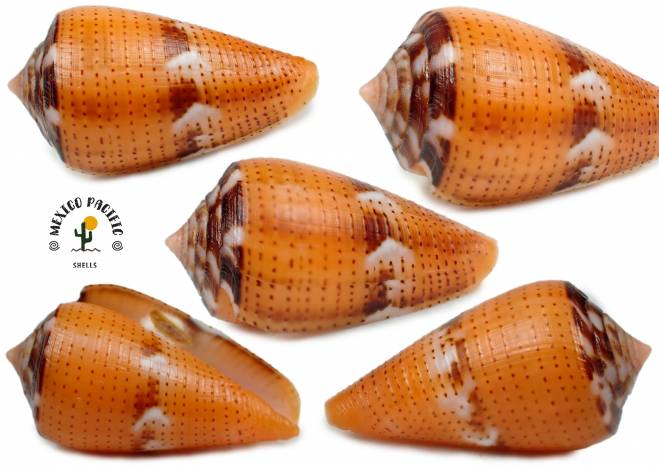 | Note | SPECTACULAR STRONG AND VIVID FRESH RARE ORANGE COLOR FORM WOOOOW!! The most crazy strong Orange color form ever and the most rare coloration for this species. This Exceptional masterpiece presents dense and multiple tiny granulate brown spotted banding all around the body whorl. Elegant thick band with brownish and white exquisite dots between. Resplendent contrast between the vivid Orange color and the colorful dark brown-white spotted spire. Intact lip, excellent siphon, original operculum and elegant aperture. The best of the best for the species. One of the most hard colors to get. This species is uncommon in my region. Apparently, populations are very small, with only a few individuals, and they are usually found in enclosed bays in calm, clear, muddy waters. They are rarely found directly in the open sea or on corals. The periostracum is very dense, like hair on the spire, and very thick and slippery around the body whorl. The animal is bright red-orange with striking colors and tiny black dots. Very hard to find with such incredible conditions and strong orange colors as this one. Do not miss this unique opportunity to get this uncommon species. Gem-F++++. Found buried under big stones with brown algae, soft corals and mud about 6m deep. Cuastecomates, Jalisco, Mexico. March 2026. Value for this rare Special Orange color form with unique granulate spots banding and some brownish-white middle band making a great effect: 55-65 euro or more. Good luck and Happy shelling!!! MEXICO PACIFIC |