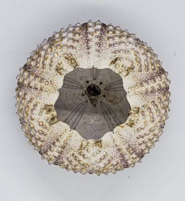 | Note | One very excellent and colorful specimen of Arbacia nigra (formerly known as Tetrapygus niger), an endemic urchin of Chile and PerĂº. This is only the test (skeleton), without spines, from a specimen washed ashore alive at a beach in northern Chile, and which was carefully cleaned with soap and soft brushes. These tests are the skeletal structure of the sea urchins and in living specimens they contain their soft parts and support their spines. They are very colorful and a nice natural history item, a colorful urchin test perfect for your Natural History Cabinet or Wunderkammer. |