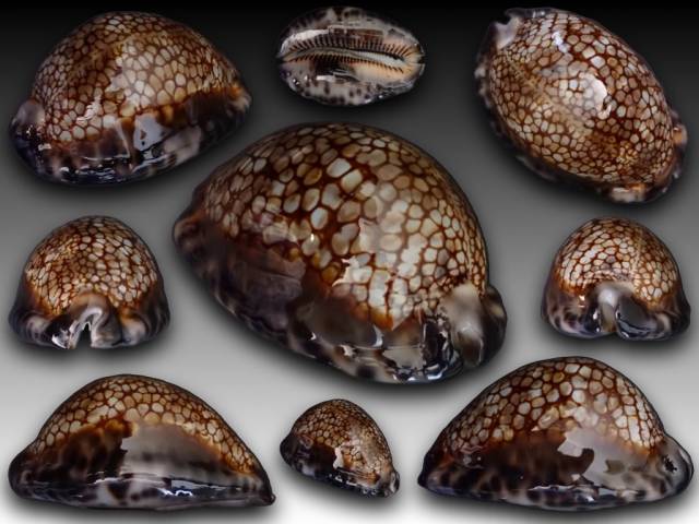Large, inflated and hyper-calloused member of this striking Hawaiian species. Brilliant color, thick nacre and superb reticulated pattern. Heavy shell, with thick calloused margins with tubercules and beautiful dark spotting extending over the margins and peripheral base. A solid shell with a strong weight/size ratio (72.0 grams).The maculifera shows perfect extremities, base and aperture. Harvested off Kaena Point. Oahu, Hawaii on night dive under a ledge at 8-10 meters in 2022. There is evident a negligible growth crease on the labral anterior ramp. Grade: GEM minus.