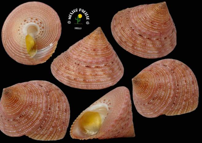 | Note | MAGNIFICENT PINK COLOR WITH DENSE UNIQUE GRANULATE FORM! CALLIOSTOMATIDAE - Calliostoma aequisculptum (Carpenter, 1865). RARE!! With 13.1mm high and 16.9mm wide Extraordinary dense multiple knobs-granulate form all around with the best strong pink color, intact lip, apex, spire and sculpture. Stunning pearly aperture and spiral diamond-shaped ribs in the form of light spiny knobs. Do not miss this spectacular beauty. Gem-F+++. Found attached under dead corals about 5m deep. Cuastecomates, Jalisco, Mexico. March 2026. Value for this rarity with great pink coloration and extraordinary dense granulate form: 25-30 euro. Good luck and happy shelling. MEXICO PACIFIC |