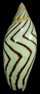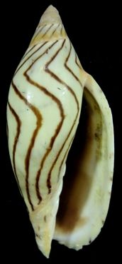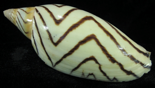 Off Darwin : Trawled in 80-100m. 1995. F/F+. Dead-taken.. Some chips in lip and some minor sponge holes. Fantastic brown wavy lines. Super RARE species. (WGOC)