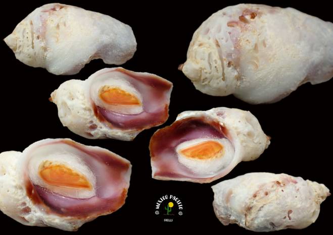 | Note | EXCEPTIONAL AND ELEGANT STRONG DEEP PURPLE OUTER AND INNER LIP COLOR FORM!! This species are most hidden between live corals for protection but some of them when the corals grow fast, sometimes they get trapped and die inside the coral. This species is never Gem, here a really nice aperture with the darkest purple inner-outer lip color and original seldom seen operculum you will see. Great elongated, curved lip and irregular form, some erosion and drill holes around as usual for the species. See pictures. Found attached inside dead corals about 5-6m deep. Cuastecomates, Jalisco, Mexico. March 2026. Value for this seldom seen species with rare original operculum: 20-25 euros . Good luck and happy shelling. MEXICO PACIFIC |