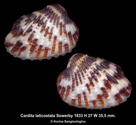 NameCardita laticostata - Gorgeous Brick/Blackish! , Sowerby 1833