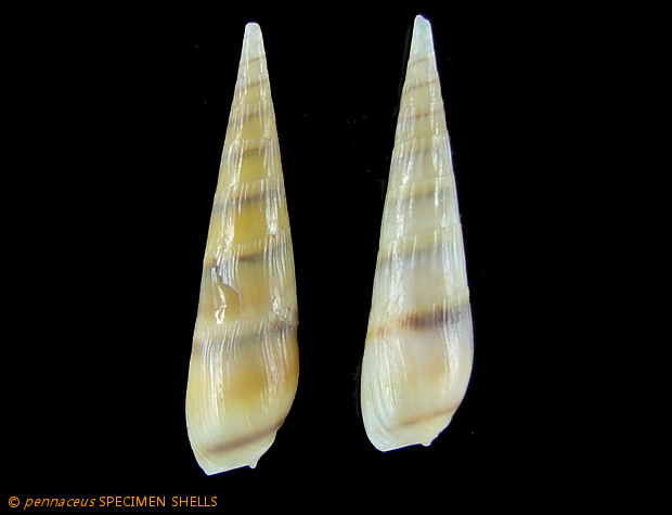 | Item | # 0001578602 | | Family | Terebridae | | Name | Impages cf. aciculina - CONTRASTING PAIR! , Lamarck, J.B.P.A. de, 1822 |