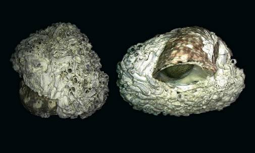 NoteTaken on a very dangerous place, on my hands and knees, on very sharp slippery rock plates, going down steep. A lot of cleaning work, but I love this shell covered with worms !