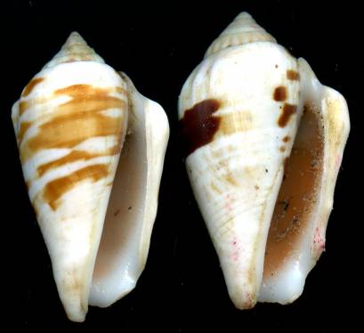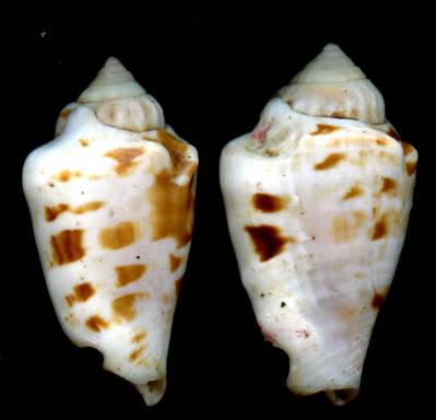 | Note | Special color and pattern. The darker one as a Helcion trace on terminal shoulder, the other one is slightly chipped below the stromboid notch. Fine+ |