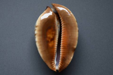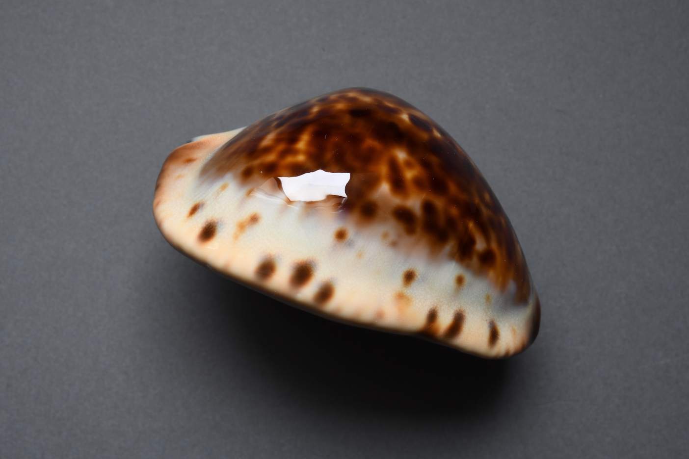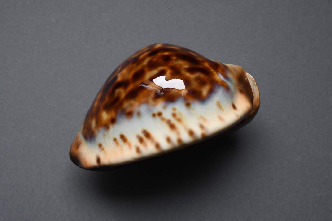 Fine+++/Gem-. There are no flaws except for a nuanced line on the right dorsum that is difficult to photograph and calcium deposits inside the aperture.