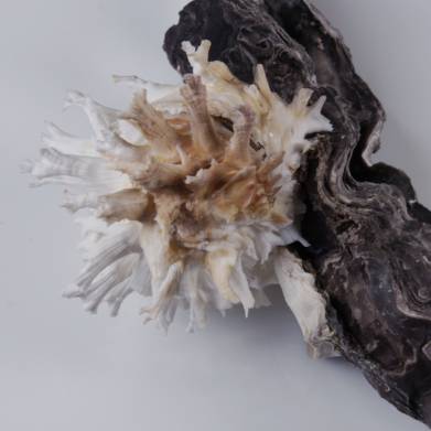Fantastic Lazarus like a flower on a malleus. Great piece for the display case. M. malleus: 172 mm. Philippines. Nocnocan Island. 25 meters deep. Collected by local fishermen. 2010. #577805