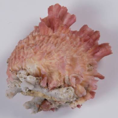 FANTASTIC AND REFRESHING COLORS - A RARE DEEP WATER FLOWER. Chama brassica occurs in two forms: the simple pale brown or purplish brown shallow water form and the strongly colored deep water specimens. This is a beautiful specimen of a magnificently fringed and colored deep-water brassica, a great rarity on the market today. In the past, especially up to ten years ago, such specimens were occasionally available from entangling nets in Balicasag. A few specimens were also found in the dredgers in Surigao. But since these two sources have dried up, colored brassica is practically no longer seen. An outstanding specimen of great beauty. Only offered from old collections and extremely rare. The opportunity from my personal collection.