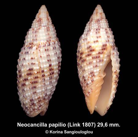 black and brown marks attractive sculpture with knobby cords. Cream, pale yellowish/orange aperture and lip with teeth. Taken