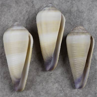 NoteF++/+++. Straight from Balabac Island this fresh set of superbly colored C. terebra with different shades of yellow, olive and purple. Spires with minor defects, very acceptable. HYPOTYPES in the twin books: 1000 Shells, exceptionals from the Philippines. Left to Right = 53.9 mm; 52.2 mm; 49.5 mm. Philippines. Southern Palawan. Balabac Island. Fished by fishermen from Olango Island. 2011. #639108