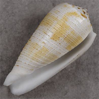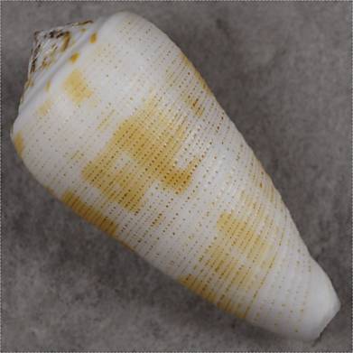 GEM. (G.T. Poppe) One of the rarest Conus-forms in the world and the first one in my 40+ years career as a conchologist: a GRANULATE CONUS MAGUS. I handled thousands of magus from everywhere in the Philippines and thought that granulate magus do not exist. The few shells named “magus” with a light granulate structure shown in the literature are either C. cernohorskyi or C. metcalfii. This shell, color-wise belongs to the white-and-yellow form epistomiodes Weinkauff. Museum quality and award-winning, possibly unique. Museum quality and award-winning, we know of 3 specimen and probably there are less than a dozen worldwide known. Conchology, Inc. handled over 2500 selected pieces of Conus magus in 20 years.