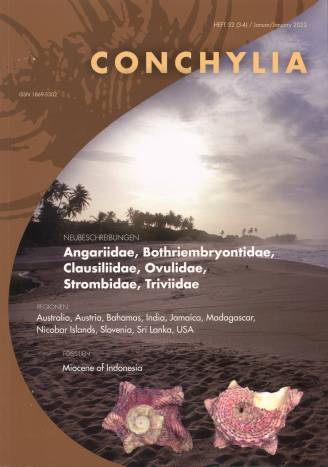 | Note | 90 pages, 26 pls. => special price various papers & new descriptions on fossil Strombidae, Angariidae, Clausiliidae, Bothriembryontidae, Triviidae, Ovulidae, fossil Pediculariidae, etc. new Caribbean species in the genus Niveria, one new Ovulid species from Madagascar |