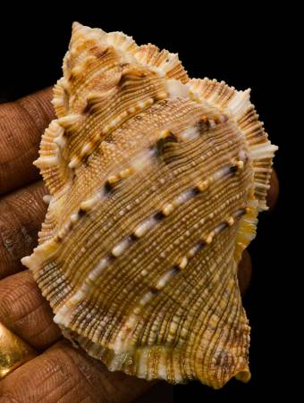 Note | FINE+++, Its thick, sculpted ridges are highlighted by warm golden-brown tones and creamy white accents, giving it a unique and eye-catching appearance. Net by local fisherman 20 to 25 m, During the month of May 2025. |