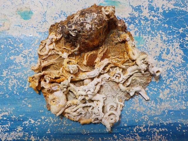 Tube worm colony , attached on a metal from an old anchor , 86.84 mm . Evia island, Greece