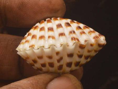 | Note | FINE+++, Soft creamy tone with neat brown spots and defined ribs, ELEGANT VARIETY, Small yet charming and well-formed. Net by local fisherman 20 to 25 m, During the month of August 2025. |