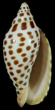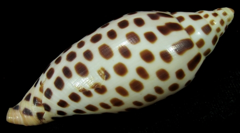 Trawled by shrimpers at 70-90m on sand. 1986. F++. Slightly smoothed, Wonderful lip. Dark, gorgeous spiral spotting. From old collection. (DAOC)
