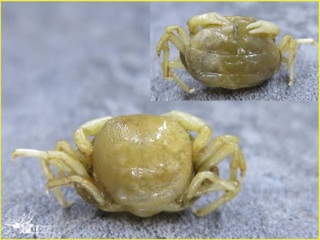Taken by local fisherman from 20-25m in Chlamys farreri.(Size without legs) Complete.PS: Freezing,Put into 75% alcohol after sell. In order to facilitate the transportation, keep the specimen soft.You need to make the crab yourself.