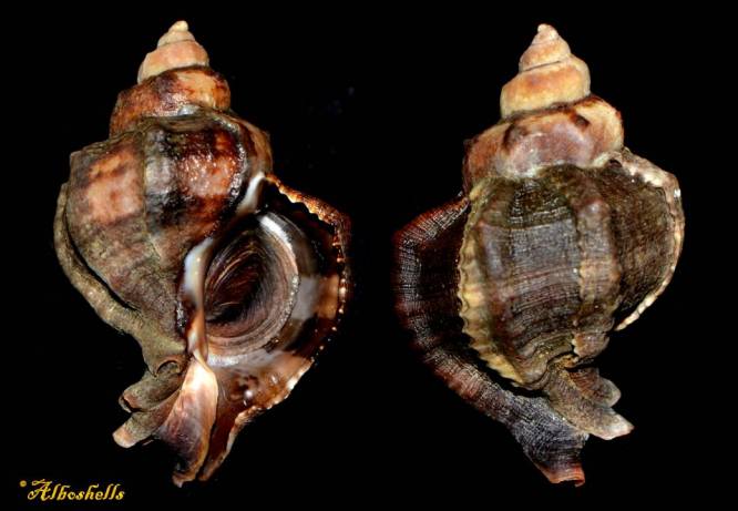 Note16490 Hexaplex trunculus (Linnaeus, 1758) 53,93 mm Italy MURICIDAE F++, DARK, w/o, at 2 m depth, Lago Faro 12/08 Ex coll.
