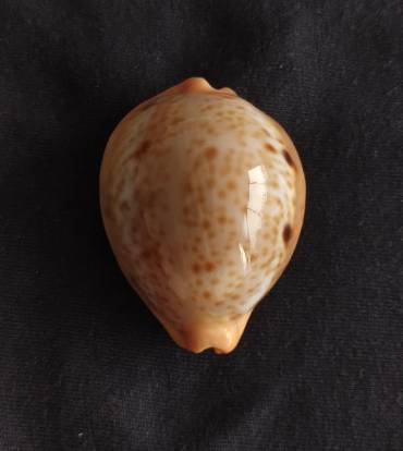 Good example of a deep water species that has never been easily available in top grade conditions. This mature shell has nice whitish bands above the well developed callous and delicate stabilized apricot color. The pattern is peculiar for two sharp dark spots on the columellar side just above the callous (side images are available). I cannot see defects at naked eye. Collected in 1997 by tangle nets laid down in +/- 120 mt off Balut island, at the southern point of Mindanao in the Philippines. Shadows and white marks are reflections from the camera.