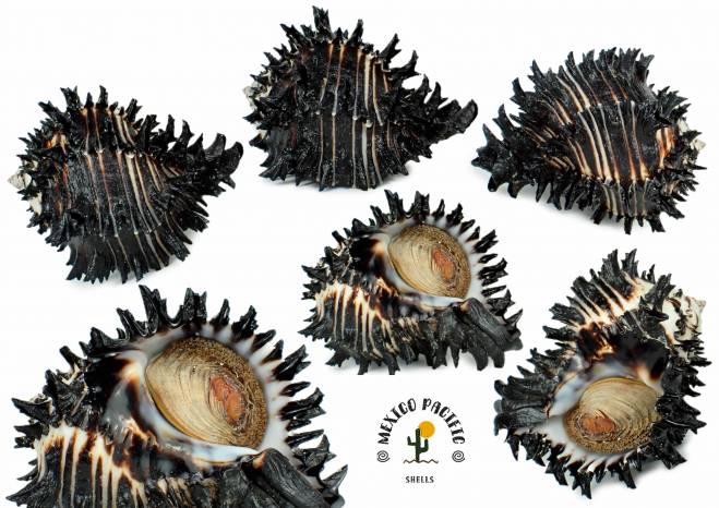 The best exquisite high selection for this seldom seen species. Do not miss this unique opportunity to get this real top black spiny masterpiece specimens, very selected from many dives and very difficult to clean them to reach this results, hours cleaning with ultrasonic scaler. The Muricanthus population in Barra de Navidad, Jalisco is unique, as the specimens are inside a lagoon with mangroves nearby and protected from currents, waves and directly sun light, most of them covered with algae and mud keeping their apex, spines and body generally intact, something completely different from the populations in the open sea, with much damage to their shells-spines, fully with erosion, drill holes, really ugly and complete covered by very thick hard to remove calcareous attachments. Even so, these specimens here are incredibly rare with so much better conditions for the species, with incredible shapes and spines. Without a doubt this masterpieces are a treasure for anyone who wins it. Carefully handpicked with years of experience and cleaned preserving its natural parts. It is much more impressive in your hands because of the details that you can't see in the photos. Super high selection in situ with the best exceptional conditions you can get for this extraordinary and seldom seen species, choose your favorite in this great auction. For any MURICIDAE lovers of aesthetics and advancer collectors. Masterpiece rarity. Found attached and buried between muddy stones with oysters about 6m- 7m deep. Barra de Navidad, Jalisco, Mexico. November 2025. Value for this incredible masterpiece Black color form and really big size for the population in Barra de Navidad : 140-160 euros. Good luck and Happy shelling!!! MEXICO PACIFIC |