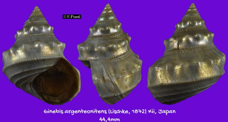 | Item | # 0003967619 | | Family | Trochidae | | Name | Ginebis argenteonitens - AWESOME Pretty F++ , Lischke, 1872 |