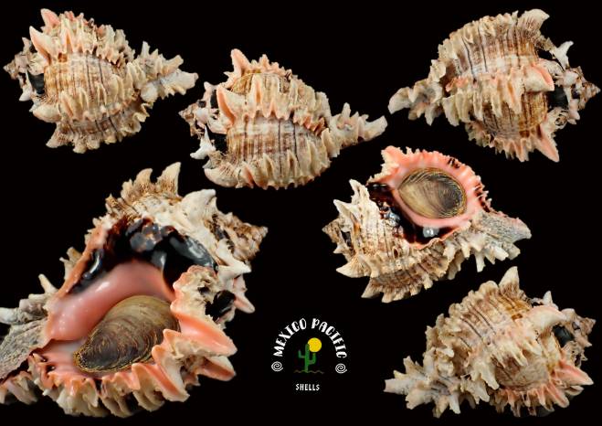 | Note | EXCELLENT MASTERPEICE WITH INTACT CONDITIONS!! I don't see any really imperfections in this Marvelous masterpiece specimen. A dream beauty with superb intact spiny spire and intact apex. Curved intact and wide-thick spines. Magnificent banding pattern with dark brown coloration between the sculpture. Extreme thick - spiny pink lip. The aperture is just stunning with striking glossy conditions combined with great fresh pink background color and a large black spot in the posterior part and columellar area. The siphonal canal and columellar lip just intact and natural. Gem. This species lives deeper in my area and it is impossible for me to find them. Before the cold water arrives, they reproduce by gathering in groups. This year I was lucky enough to find some specimens in incredible conditions, which is rare at these depths. This species likes muddy areas and murky waters, which makes them difficult to find. Without a doubt this masterpieces are a treasure for anyone who wins it. Carefully handpicked with years of experience and cleaned preserving its natural parts. It is much more impressive in your hands because of the details that you can't see in the photos. Super high selection in situ with the best exceptional conditions you can get for this extraordinary and seldom seen species, choose your favorite in this great auction. For any MURICIDAE lovers of aesthetics and advancer collectors. Masterpiece rarity. Found buried in granulate thick sand between muddy stones with oysters, chamas and mussels about 6m- 7m deep. Barra de Navidad, Jalisco, Mexico. November 2025. Value for this intact seldom seen masterpiece with the best conditions for the species you can get: 90-100 euros. Good luck and Happy shelling!!! MEXICO PACIFIC |