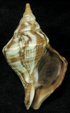 NoteTrawled at 60-80m on sand. 1998. F+++/Gem-. Uncommon species. Strikingly beautiful Brown and Cream axial markings. Live-taken. (NB)