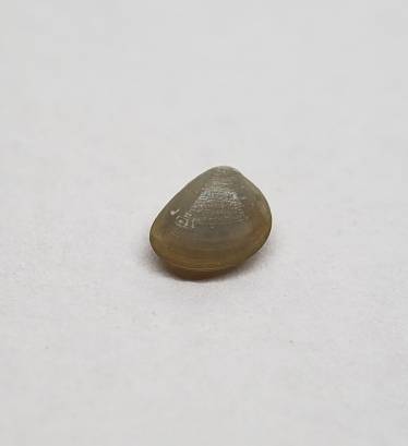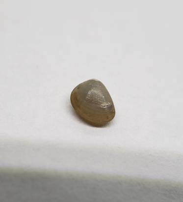 One very nice specimen of the rare infaunal clam Nucula pisum. This species lives buried in sand and it is rather difficult to find.