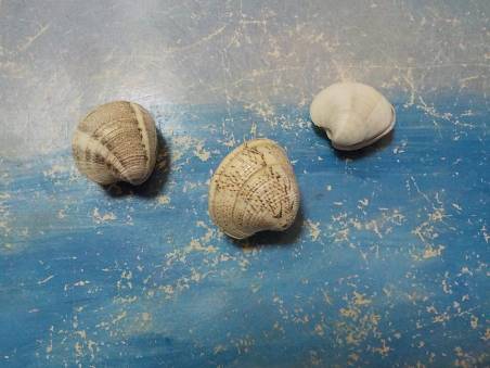 Note3 shells of Venerupis decussata found alive in the sand , in shallow waters , Evia island , Greece, July 2025. Sizes : 24.62 mm 23.24 mm 20.80 mm.