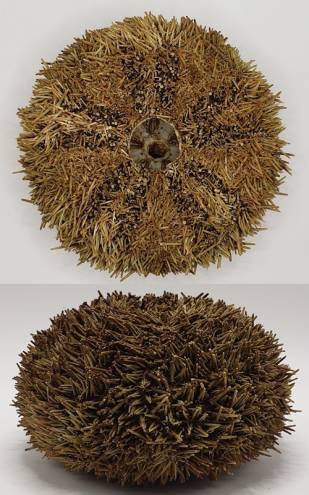 | Note | One giant (W= 125 mm, H= ~66 mm, with spines) and very nice live-taken specimen of Loxechinus albus, an edible sea urchin found in Chile. This specimen is amazing and it keeps most of its spines (they have lots of densely-packed spines). This one was collected by a fisherman in a remote location in northern Chile, and it is of the largest that I have obtained. Currently, it is very rare to get large specimens because this species is heavily exploited and also because the algae forests where they live are now threatened. So it is very difficult to obtain such large and very nice specimens like this one. The specimen was carefully cleaned with soft brushes and soap, but it still can be cleaned further to perfection, keeping their spines or not. This is a very rare giant specimen, perfect for a sea urchins collection, large size collection, or wunderkammer. A low initial price for such an amazing specimen. |