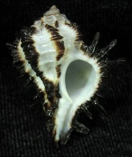 Trawled at 50m on sand. 1989. F+++. Fresh dead specimen. Superb, black axial spines. (NB)