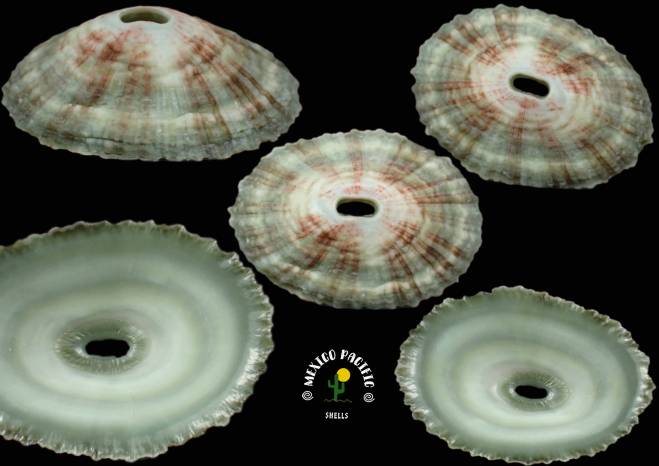 | Note | SPECIAL GREEN COLOR FORM WOOOOW!! Special Green ventral hyper gloss color form with superb conditions, impeccable elegant light reddish banding between the green light colors. Crazy pistachio exquisite color in the ventral side with shiny conditions. Phenomenal conditions for the species. Some light erosion as usual for this rough species not really detracting this impressive beauty, F+++-F++. Apparently feeding on the marine soup that comes and goes with the currents and waves and seaweeds, this species lives where the waves break and in the intertidal zone. Really hard to remove from stones without braking them. Found attached to the rocks with green and brown algae at extremely low tide between strong waves. Near Playa Careyeros, Nayarit, Mexico. August 2025. Value for the most hyper gloss dark green ventral side ever with dorsal light green-reddish colors: 15-18 euro. Good luck and Happy shelling!!! MEXICO PACIFIC |