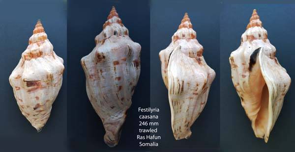 | Note | very large shell, WRS, cream light tan coloration dorsum with tanflames, spire with reddish flames, rather in very good quality, F+++/F++++, only a tiny ship on posterior part, nice lip, intact protoconch, trawled off Ras hafun |