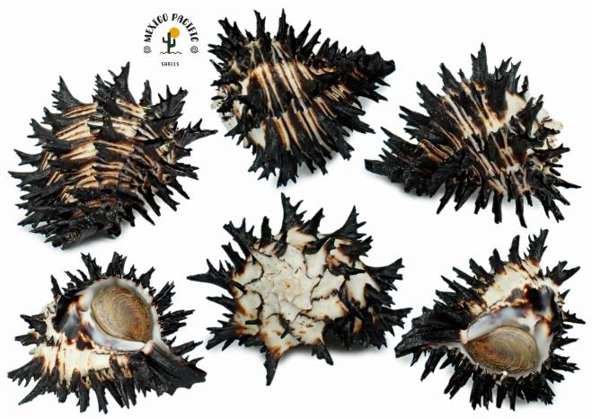 | Note | INCREDIBLE SUPER LONG SPINES FOR RADIX!! Unusual extra wide form. Wide 89.5mm and long 89.5mm Resplendent and marvelous branched shoulder spines. Short spire with apex absent but still some part and micro drill holes around the spire, apex area and some light erosion around not really harming the beauty of this extra long spines M. radix. F++-F+++. Hard to get species in Cuastecomates nowadays with great conditions, this species is really ugly most and this here present a very long extreme spines like a sea urchin.