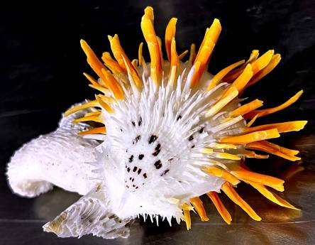 | Note | XFB 41 - Spondylus sp. FROM THE LATE 90'S (different from known species in all books! Some with rare purple, reddish orange, yellow, light brown or even pink spines on white body, some bi-color on both valves!) THIS LOT HAS BEEN KEPT IN THE ORIGINAL CONDITION FOR MORE THAN 25 YEARS AND JUST CLEANED ONE-BY-ONE A FEW DAYS AGO !!! size is approximately 91.00 mm (measured at maximum dimension across the shell & attachment altogether), shells are F++ and better, in general, please see photos, collected by local divers offshore at 15 - 20 meters deep off Racha & Maiton Is., Thailand, Andaman Sea. EX : COLL - Jom Patamakanthin. (***There can be tiny imperfections, scars, damages as natural objects, please bids with your decision & confidence.) Estimated value between 50.00 - 100.00+ euros for such museum-class specimen! |