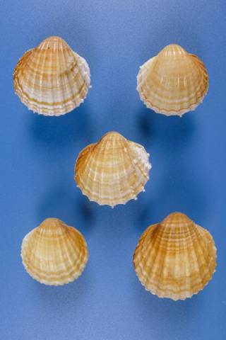 Acanthocardia paucicostata - SET OF 5 SPECIMENS , (G. B. Sowerby II, 1834)