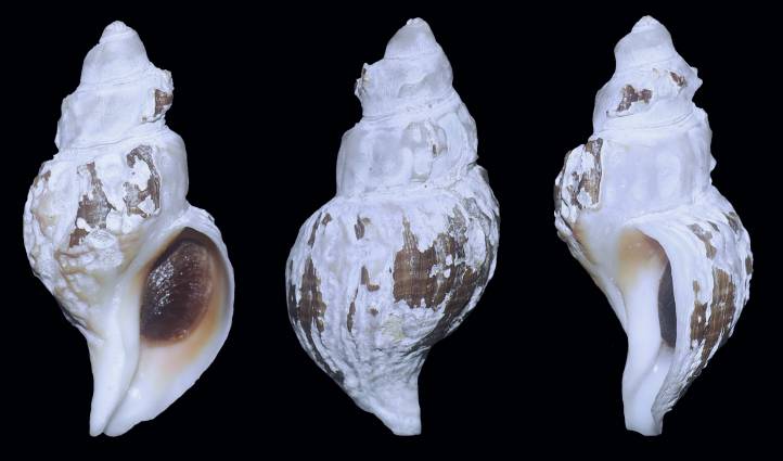 NoteN.Kurile Ids., Pacific O. side of Paramuschir Id., 49° 57,5'N, 155° 56,1'E, , snyurrevod, 101m.depth, volcanic black sand, gravel, broken shells (05.12.2016) F++ RARE!, Self-collected, usual eroded surface.